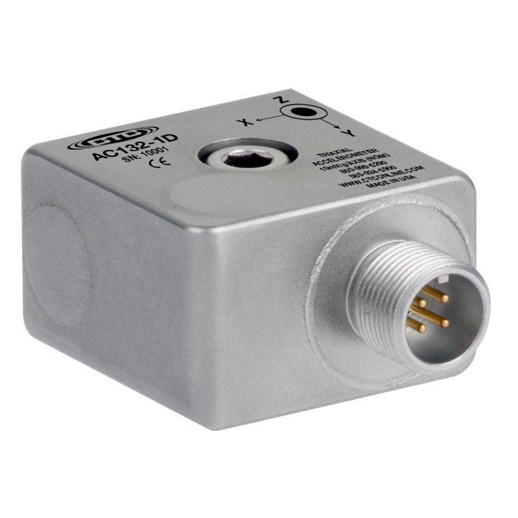 美國 CTC AC132系列工業型三軸加速度傳感器,精度高,量程大,價格便宜,靈敏度:10 mV / g,頻率響應(±3dB):1-8000 Hz,動態范圍:±500 g(峰值),316L不銹鋼金屬外殼,4針J連接器。