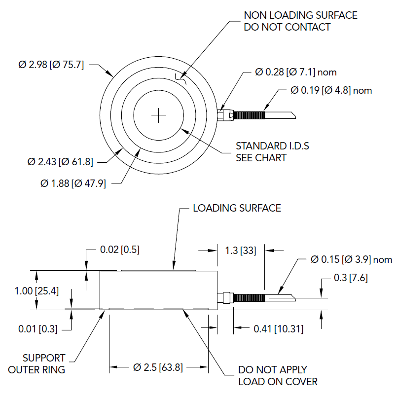 LTH500中空型測力傳感器 FSH04246 22240N 1" [25.4 mm]內徑 LTH500,22240 N量程,中空型/螺栓預緊力傳感器,RoHS認證,材質 - 17-4 PH S.S.不銹鋼,1" [25.4 mm] 內徑,#24 AWG 4芯編織屏蔽聚四氟乙烯電纜,長度3米