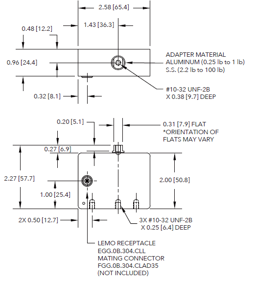 LRF400高精度拉壓力傳感器 FSH00267 445 N LRF400,445 N,超薄型軸向拉壓力傳感器,小量程,高精度,拉壓雙向,2024鋁合金,英制# 10-32-螺紋,過載保護,4針LEMO插座(egg.0b.304.cll)。